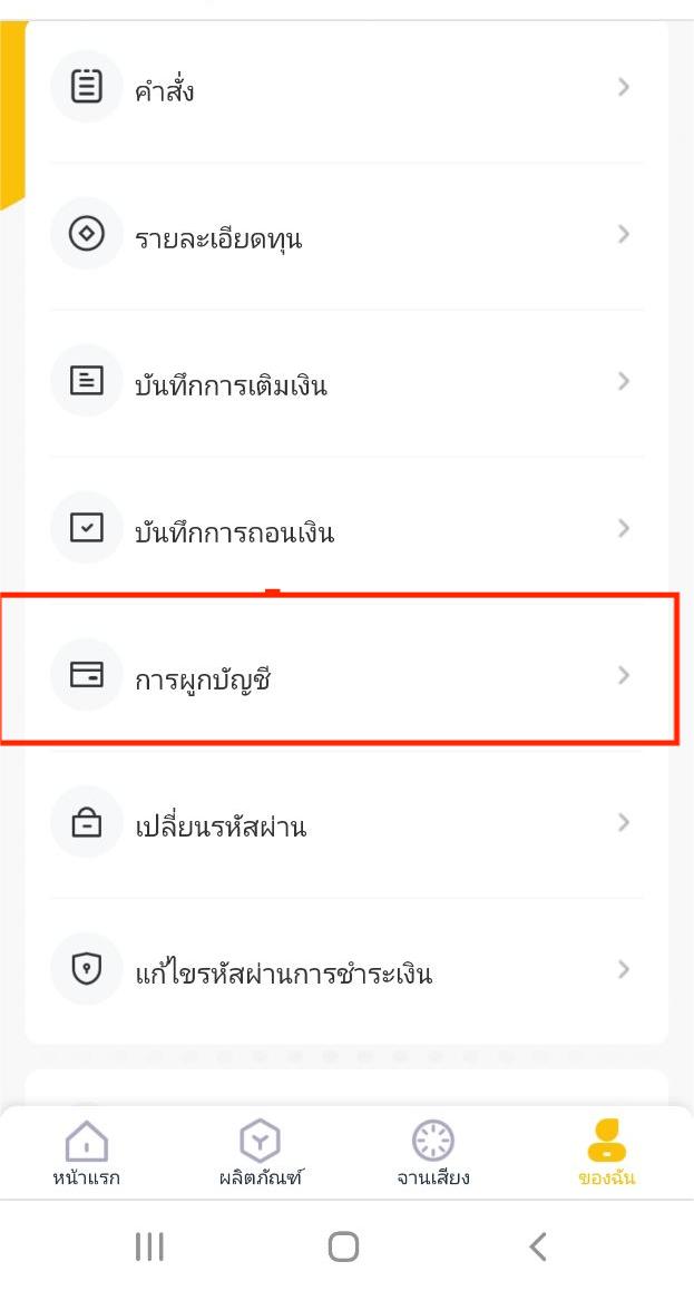 เลือกการผูกบัญชีเพื่อผูกข้อมูลบัตรธนาคารของคุณ