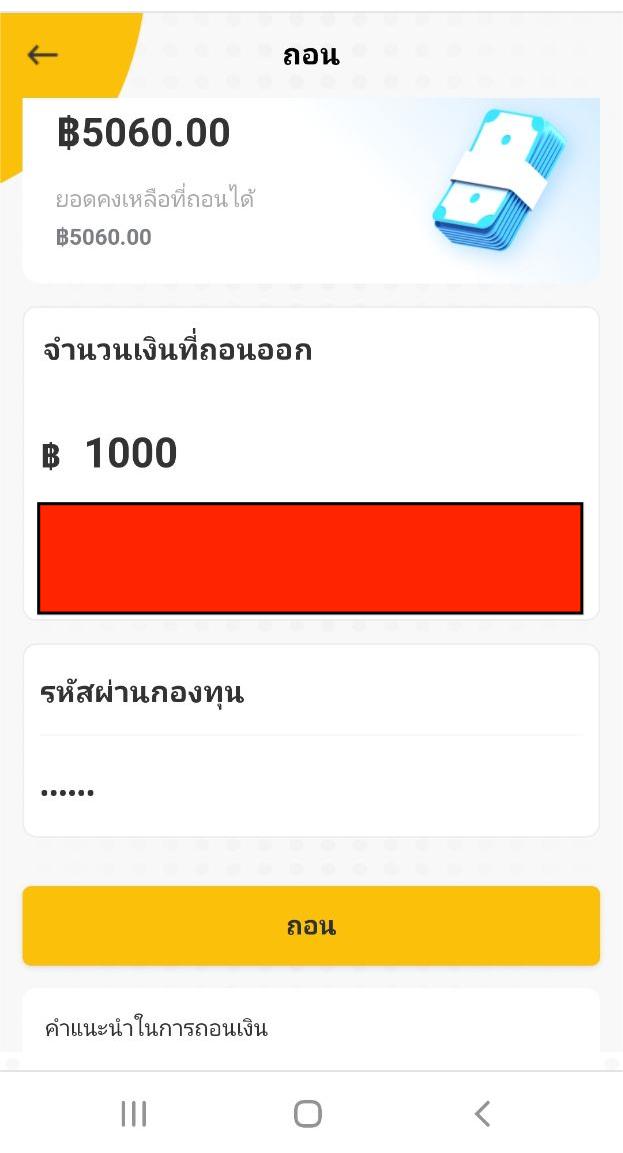คุณสามารถถอนรายได้บน AIShared-Mall ได้ตลอดเวลา ในการถอนเงิน คุณต้องเข้าสู่ระบบ AIShared-Mallในมือถือ คลิก [ของฉัน] จากนั้นผูกข้อมูลบัตรธนาคารและตั้งรหัสผ่านการชำระเงิน สำหรับการถอนเงิน ยอดเงินของคุณต้องมีอย่างน้อย 500 บาท